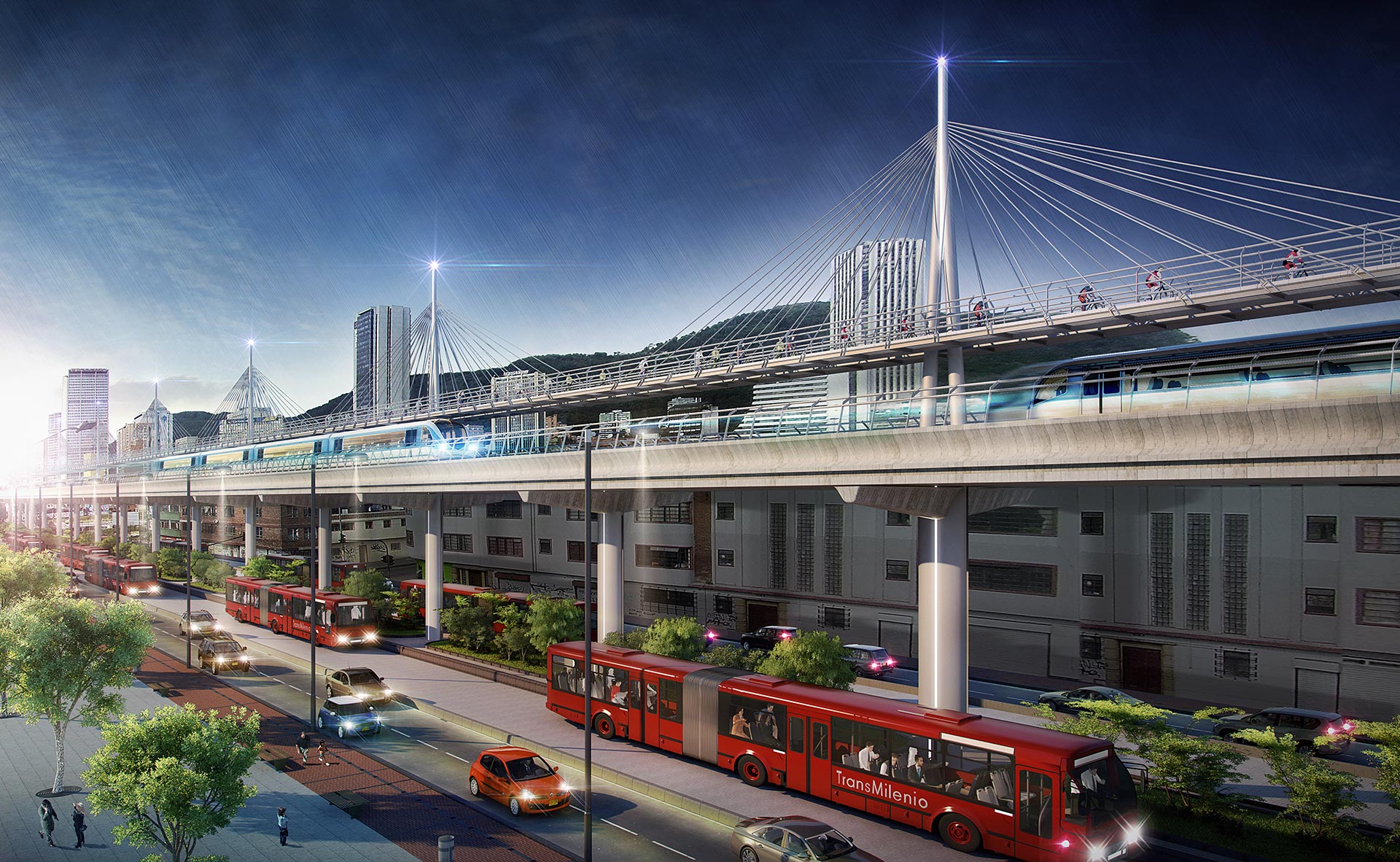 A Linha 1 do Metrô de Bogotá, atualmente em construção, contará com 16 estações elevadas distribuídas em 23,9 quilômetros e previsão de transportar mais de um milhão de passageiros por dia a partir de 2028. O sistema será totalmente automático e sem condutor, integrado à rede de Bus Rapid Transit (BRT) em dez estações, para reduzir a congestão e melhorar a mobilidade urbana.